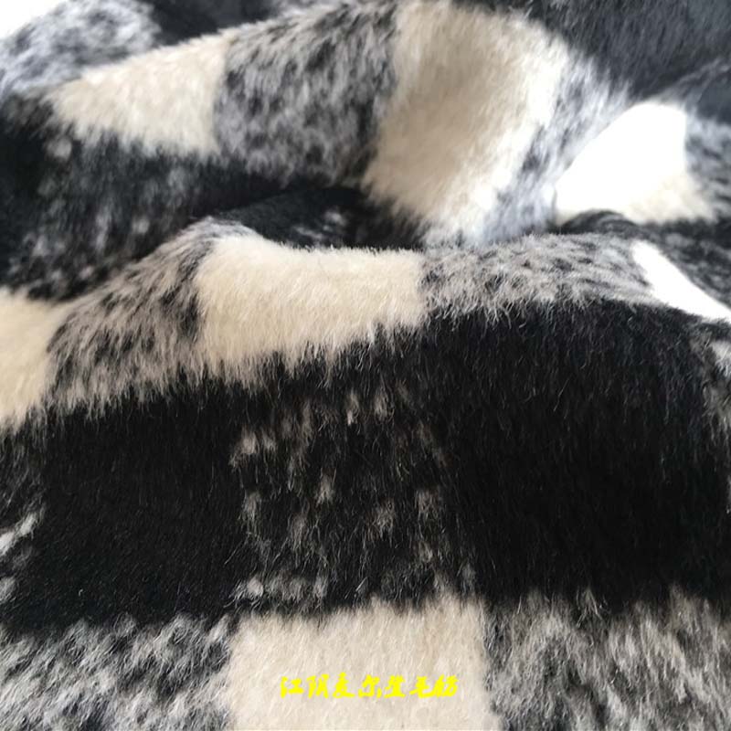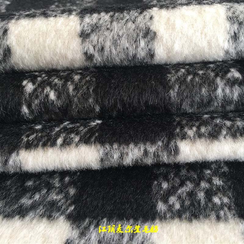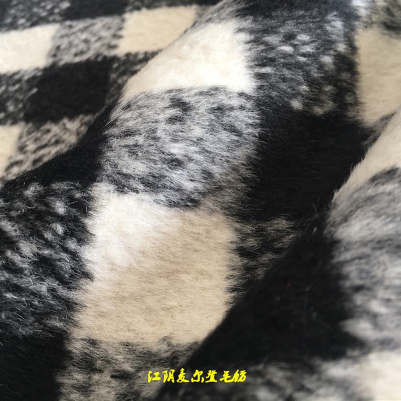 黑白粗花呢格子順毛黑白粗花編織格子呢