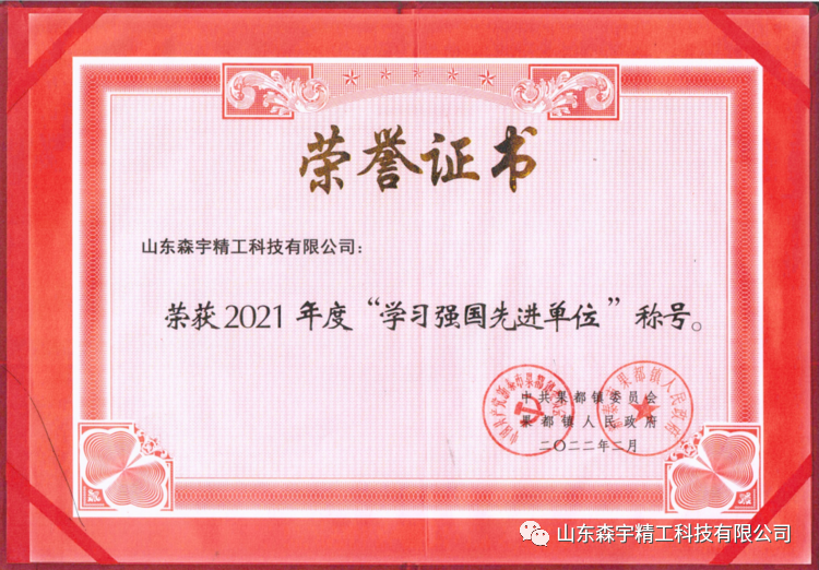 大會表彰了2021年度先進單位和先進個人,森宇精工榮獲2021年度納稅十強企業(yè)、2021年度項目建設(shè)先進單位、2021年度安全生產(chǎn)工作先進單位、2021年度學(xué)習(xí)強國先進單位稱號。